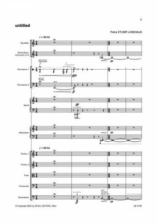 für für Bassflöte, Kontrabassklarinette, Akkordeon, Harfe, Perkussion (2 Spieler*innen), 2 Violinen, Viola, Violoncello und Kontrabass